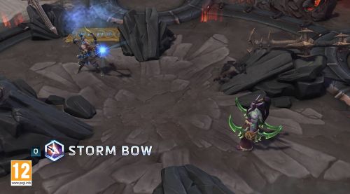 - Pied sûr (A) : toucher un héros avec Arc tempête augmente la vitesse de déplacement de 10% pendant 6 secondes, jusqu'à un maximum de 30%.
